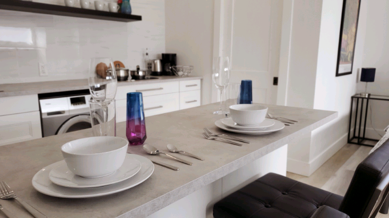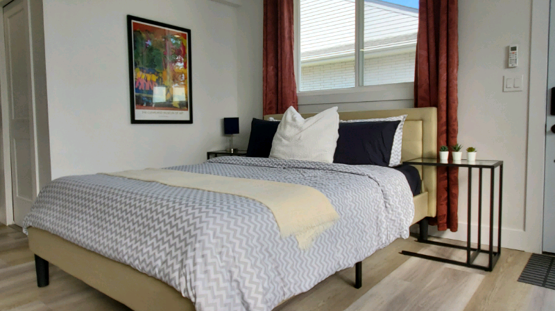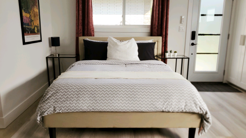 This gorgeous luxury studio unit is brand new, fully stocked, and contains all of the amenities you need to enjoy your stay in Kitchener. The Luxe Studio is a premium studio apartment in an excellent neighborhood. It’s located just 4 minutes away from the Boardwalk Plaza. The private apartment is located on the main floor within a multi-unit home and features 9.5ft high ceilings and all of the modern, stylish touches you expect from a space.