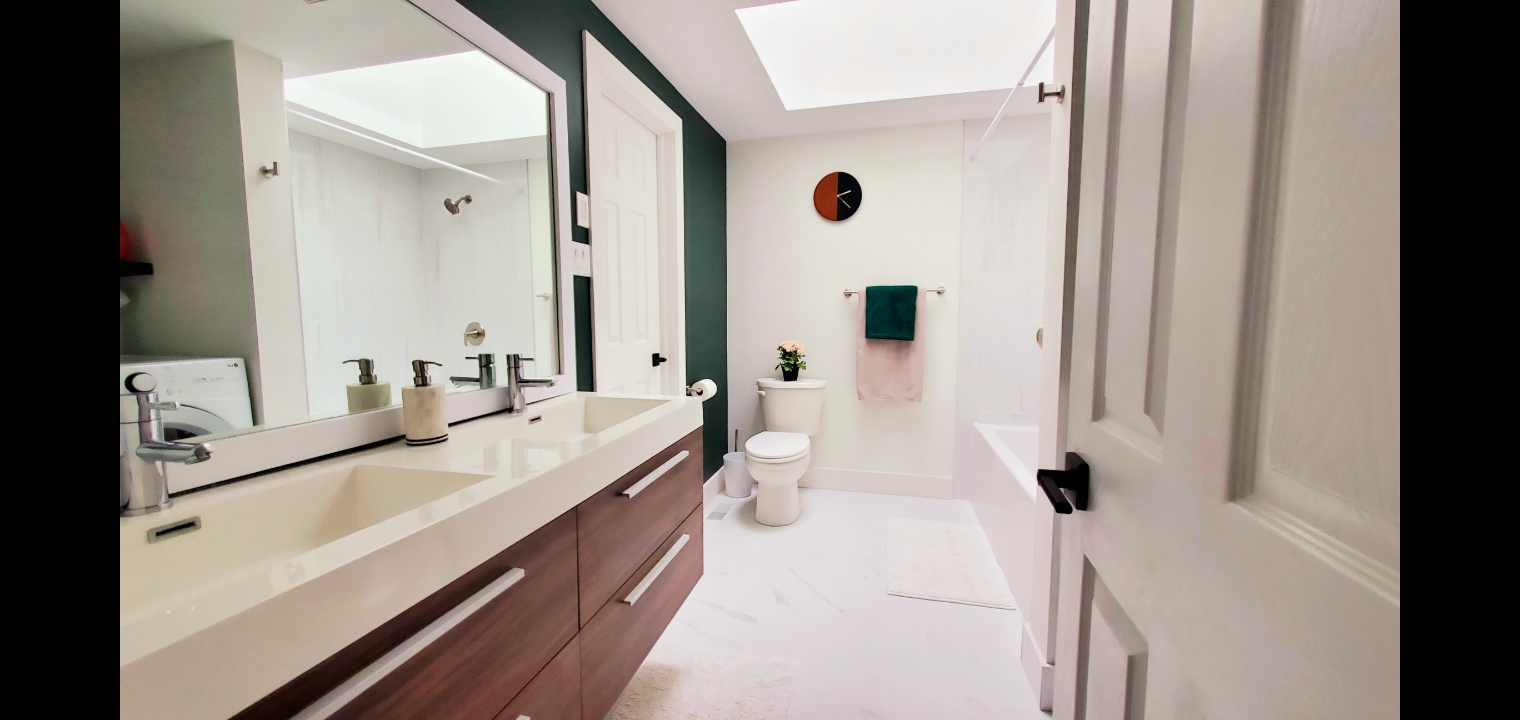 Luxurious 5-Star Features: Professional interior design, premium king & queen mattresses, 55 in Smart TV (Netflix & Roku apps pre-installed), large kitchen, elegant dining room, stainless steel appliances, in-suite laundry, a private outdoor patio, 2 parking spaces included, housekeeping service option and grocery service available for long term stays. Located in a quiet and beautiful neighborhood.